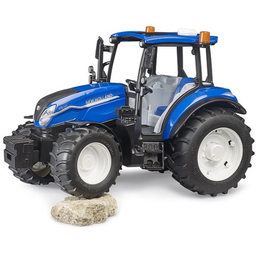 | Bruder 02184 New Holland T5.120 Traktor. Der Bruder 2184 New Holland Traktor ist ein wunderschöner Spielzeugtraktor im Maßstab 1:16. Dieses Bruder-Modell ist mit den serienmäßigen Gummiprofilrädern ausgestattet und verfügt über eine lenkbare Vorderachse. Das mitgelieferte Lenkrad lässt sich durch das Dachfenster auf die Lenksäule stecken und so den Bruder New Holland Traktor lenken. Die Vorderachse ist zudem so konstruiert, dass sie dank der eingebauten Federung realistisch über Unebenheiten fahren kann.