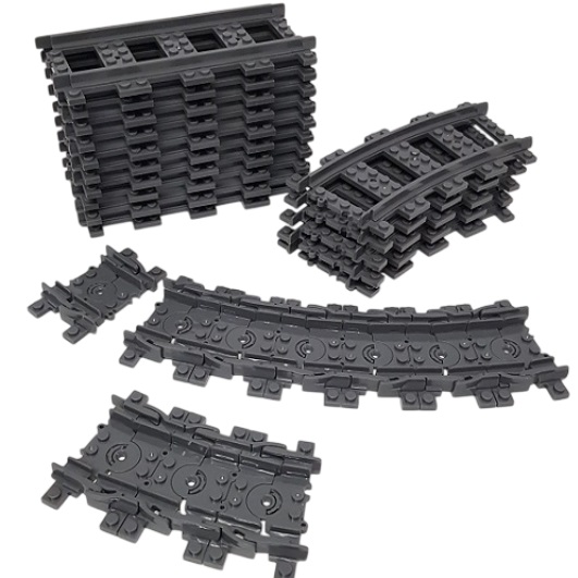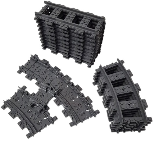 20115 - Eisenbahnschienen-Ergänzungsset, 10x gerade, 5x gebogene und 10x flexible Schienen, kompatibel mit Lego