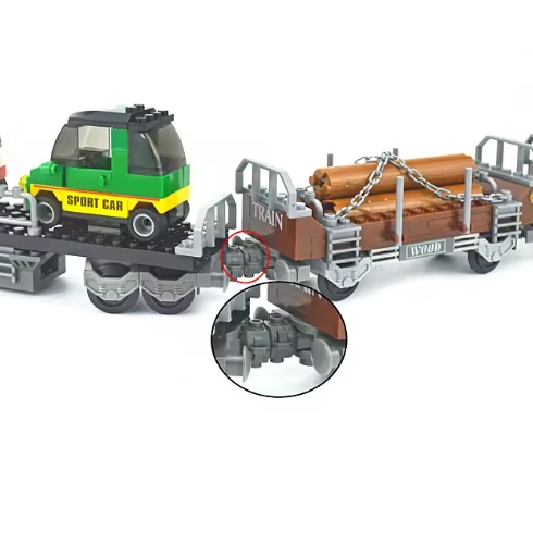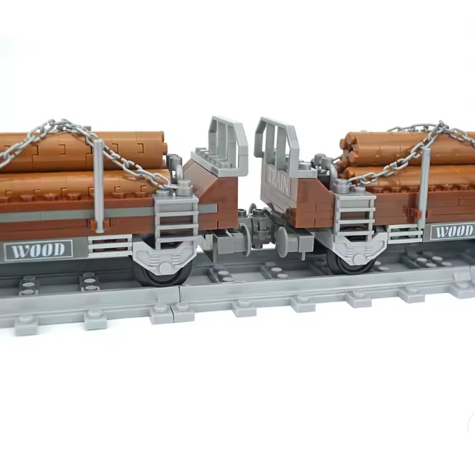 Spezifikationen 20136 Bausteine-Eisenbahnwagen für Baumstämme, mit 5x Schienen und Werkzeug, kompatibel mit Lego und Mould King, ca. 151 Bausteine: