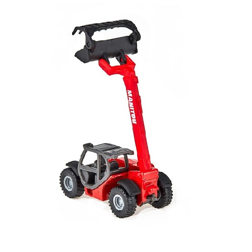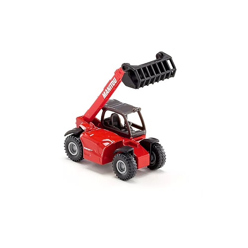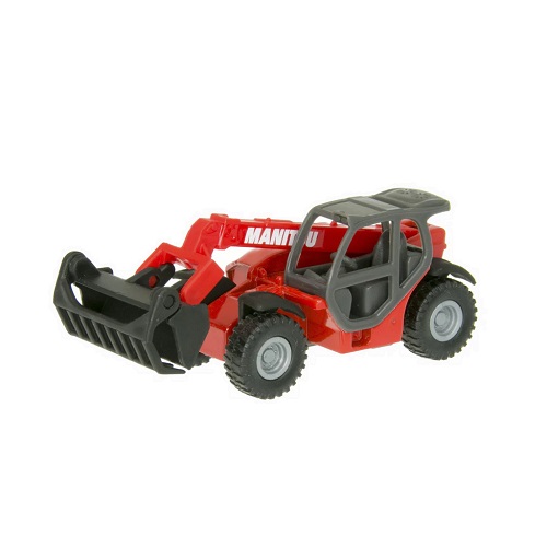 | Siku 1482 Manitou Teleskoplader. Ein Manitou-Teleskoplader ist heute im hofnahen Arbeitsbereich nicht mehr wegzudenken. Der flexible Teleskoplader ist sehr wendig und kann auch Lasten und Material in den zweiten Stock transportieren. Das aktuelle Modell des französischen Herstellers Manitou ist weltweit ein Synonym für diesen Maschinentyp. Der Ladearm ist wie die Standard-Silageschaufel beweglich. Der Teleskoplader Manitou von Siku besteht aus Metall mit Kunststoffteilen. Der Teleskoplader verfügt über eine Deichsel, an der alle Anhänger des gleichen Maßstabs angeschlossen werden können. Der Manitou Teleskoplader ist ungefähr im Maßstab 1:87 und lässt sich daher gut mit anderen Siku-Spielfahrzeugen im gleichen Maßstab kombinieren.