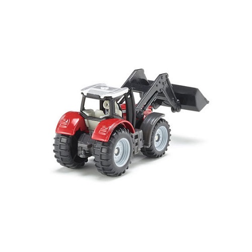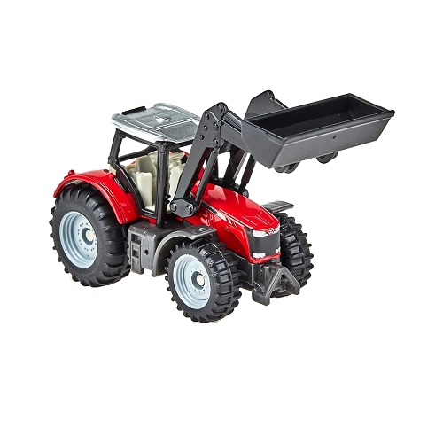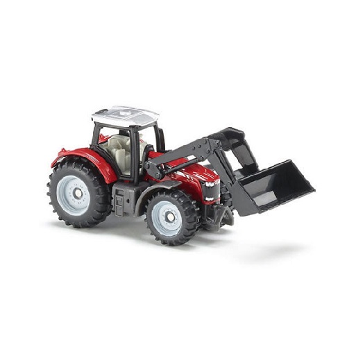 | Siku 1484 Massey Ferguson Traktor mit Frontlader. Der Massey-Ferguson Traktor mit Frontlader in der kleinen SIKU-Größe. Der Traktor hat einen beweglichen Frontlader mit Schaufel. Das abnehmbare Fahrerhaus und die Anhängerkupplung runden das Bild dieses kleinen Allrounders ab. Alle Anhänger des gleichen Maßstabs können an die Deichsel gekoppelt werden. Der Massey Ferguson Traktor besteht aus Metall mit Kunststoffteilen. Der Massey Ferguson ist ungefähr im Maßstab 1:87 und lässt sich daher gut mit anderen Siku-Spielzeugfahrzeugen im gleichen Maßstab kombinieren.