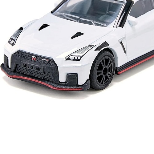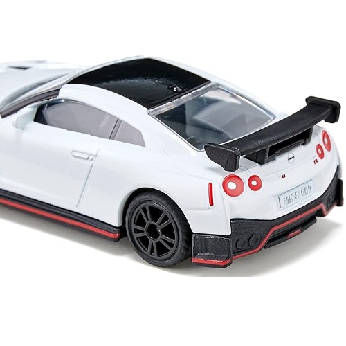| Siku 1579 Sportwagen Nissan GT-R Nismo. Der Nissan GT-R Nismo ist der ultimative Supersportwagen für alle, die beeindruckendes Design und Leistung lieben. Das Spitzenmodell von Nissan mit über 600 PS verspricht Aerodynamik und Emotion pur. Mit seiner klassischen Weißmetallkarosserie, Sportfelgen mit Gummibereifung, sportlichem Heckspoiler und raffinierten Designdetails, wie einer umlaufenden roten Linie, dreht der Nissan GT-R Nismo die Straße und auch den Kinderboden Zimmer, in eine Rennstrecke. Der Sportwagen Nissan GT-R Nismo ist ungefähr im Maßstab 1:50 gehalten und lässt sich daher gut mit anderen Siku-Spielfahrzeugen im gleichen Maßstab kombinieren. Spaß macht der Sportwagen auch in Kombination mit einer Kids Globe Spielmatte. So machen Sie Ihre Siku-Sammlung noch schöner!