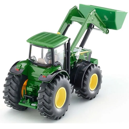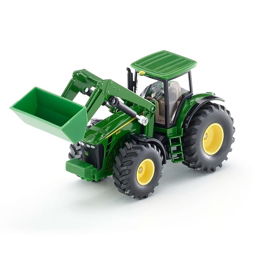 | Siku 1982 John Deere Traktor mit Frontlader. Der Siku John Deere 8430 mit Frontlader bereichert die Vielseitigkeit der landwirtschaftlichen Modellreihe um eine leistungsstarke Variante. Mit beweglicher Schaufel und Schwenkarm können unterschiedlichste Schüttgüter sicher verladen werden. Der Siku John Deere Traktor mit Frontlader besteht aus Metall mit Kunststoffteilen. Der Traktor hat eine Anhängerkupplung, so dass alle Siku-Anhänger mit gleichem Maßstab angeschlossen werden können. Der John Deere Traktor ist im Maßstab 1:50 gehalten und kann daher mit anderen Siku-Spielzeugprodukten im gleichen Maßstab kombiniert werden. Auch schön in Kombination mit Spielzeug von Kids Globe im Maßstab 1:50.