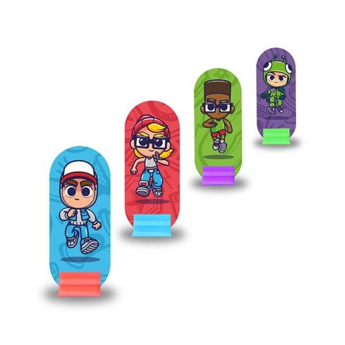 | . Ervaar de legendarische app nu als bordspel bij jou aan tafel! Daag elkaar uit met de favoriete personages uit de Subway Surfers-franchise zoals Jake, Tricky, Fresh en Yutani op de drie iconische spoorbanen. Vergroot je surfvaardigheden met items, verzamel munten en ontwijk tegemoetkomende treinen in dit behendige en avontuurlijke spel! Inhoud: 1 game board, 4 surfer tokens, 100 player cards, 50 track cards en een rulebook. Wordt geleverd in full-colour doos. Geschikt voor 2 tot 4 spelers vanaf 6 jaar.