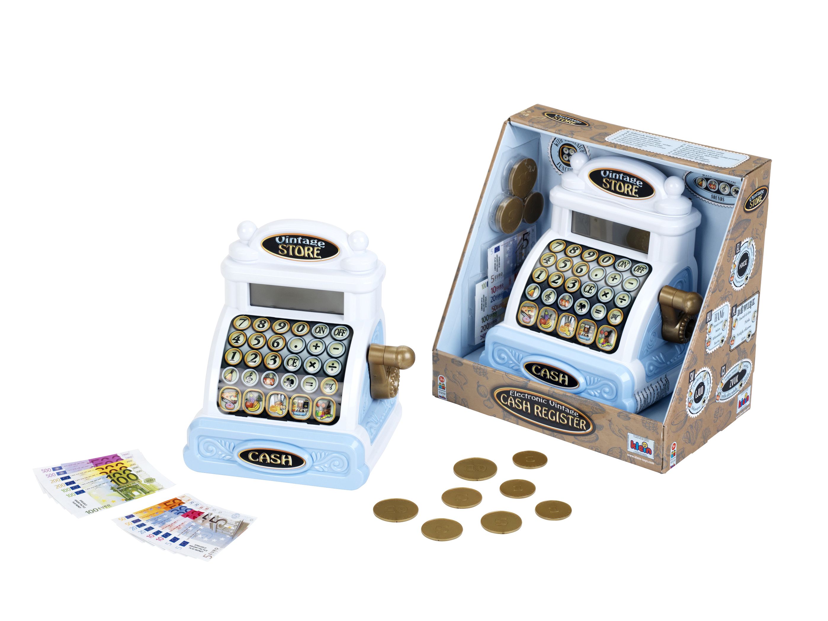 | Theo Klein Vintage Kasse. Diese originale elektronische Vintage-Registrierkasse von Theo Klein ist mit zahlreichen Funktionen wie verschiedenen Sounds, Display, Computerfunktion, ausziehbarer Kassenbox, drehbarer Kurbel und Spielgeld ausgestattet. Mit dieser Vintage-Registrierkasse lernt Ihr Kind spielerisch das Rechnen und den Umgang mit Geld und schult außerdem seine motorischen Fähigkeiten. Die Vintage-Registrierkasse hilft Ihrem Kind, Rollenspiele realistischer zu gestalten. Spielen Sie im Laden oder im Restaurant und erwecken Sie Ihre Fantasie zum Leben. Diese Vintage-Registrierkasse von Theo Klein wird mit 3 AA-Batterien betrieben, die nicht im Lieferumfang dieses Artikels enthalten sind.