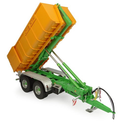 | Universal Hobbies Joskin Cargo-LIFT Trailer with container 1:32. Die maßstabsgetreuen Modelle und Miniaturen von Universal Hobbies sind hochdetaillierte Modelle speziell für den wahren Liebhaber und Sammler. Eigentlich zu schön zum Spielen, aber natürlich kann man das. Dieses Metalldruckgussmodell des Joskin Cargo-LIFT Trailer with container wurde bis ins kleinste Detail auf einem Metallsockel nachgebildet und mit Rädern aus Kunststoff und Gummi versehen. Der Maßstab 1:32 ist ein häufig verwendeter Maßstab für Miniaturtraktoren, einschließlich der Modelle Siku und Britains. Die Modelle von Universal Hobbies liegen im Spitzensegment. Der Joskin Cargo-LIFT Trailer with container wird in einer Box geliefert.