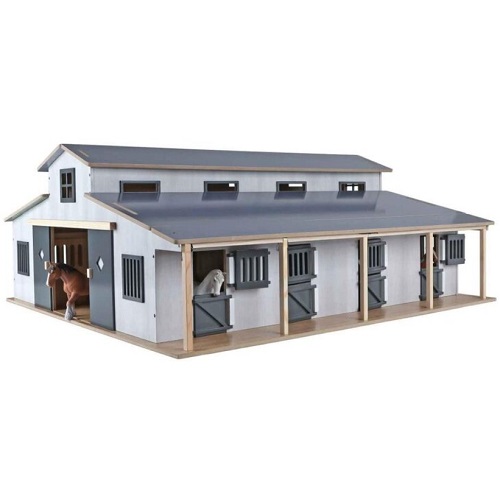 Kids Globe 610311 - Kids Globe horse stable with 7 stalls and pasture - scale 1:24(KG610311). This beautifully designed horse stable features 7 stalls and is specially designed for Schleich horses!