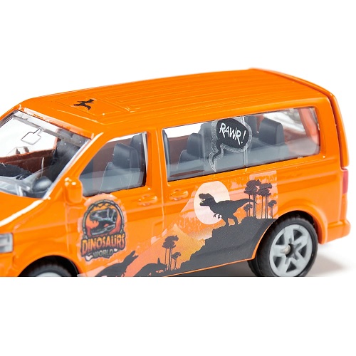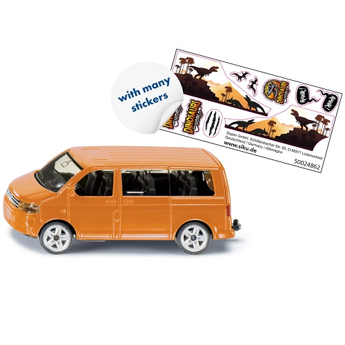 Siku 1070 - Siku 1070 Volkswagen Multivan with dinosaur stickers(SK1070). Discover the impressive Siku model of the orange Volkswagen T5 Multivan. The Siku 1070 is a real eye-catcher for children and enthusiasts of detailed vehicles.